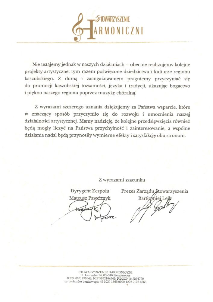 Zarząd Klubu składa podziękowania sponsorowi tej rywalizacji sportowej , Bankowi Spółdzielczemu w Sierakowicach za zakup nagród dla uczestników zawodów oraz organizatorom Panom Sychcie Karolowi oraz Hinca Damianowi.